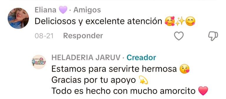 Los helados de Jaruv son simplemente deliciosos, siempre vuelvo por más sabores.