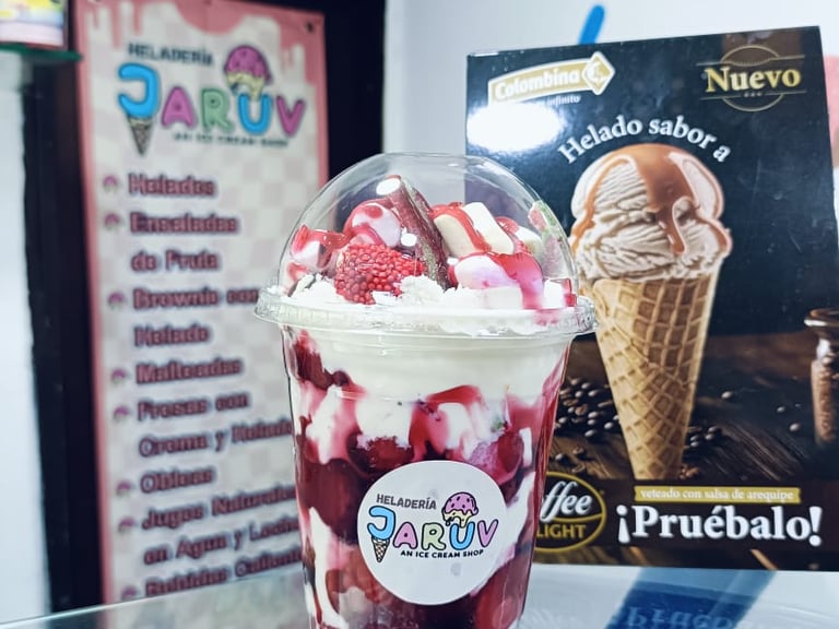 En Heladería Jaruv, cada helado y producto es una obra maestra creada con amor y dedicación para endulzar tus momentos especiales.